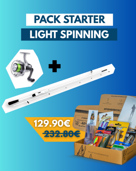 Le pack starter light spinning regroupe tous les élements pour commencer à pêcher sereinement aux leurres. Il sera parfait pour pêcher truite, perche et chevesne en rivière ou en lac avec du matériel léger.